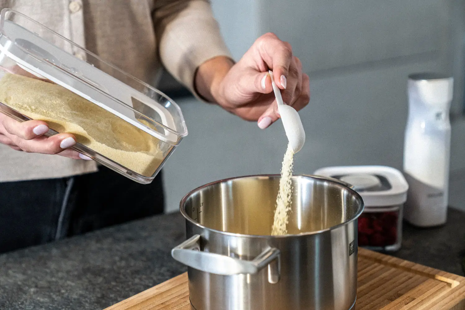 Zwilling w swojej linii Fresh & Save oferuje przeróżne produkty ułatwiające przechowywanie żywności. Kolekcję Fresh & Save Cube tworzą m.in. pojemniki zaprojektowane w taki sposób by można było łatwo i wygodnie uporządkować spiżarnię, wydłużyć trwałość żywności i zmaksymalizować przestrzeń w kuchni oraz osłony na nie oraz przydatne dodatki. Jak w przypadku innych produktów tej marki, również i te wykonane zostały z wysokiej jakości materiałów.