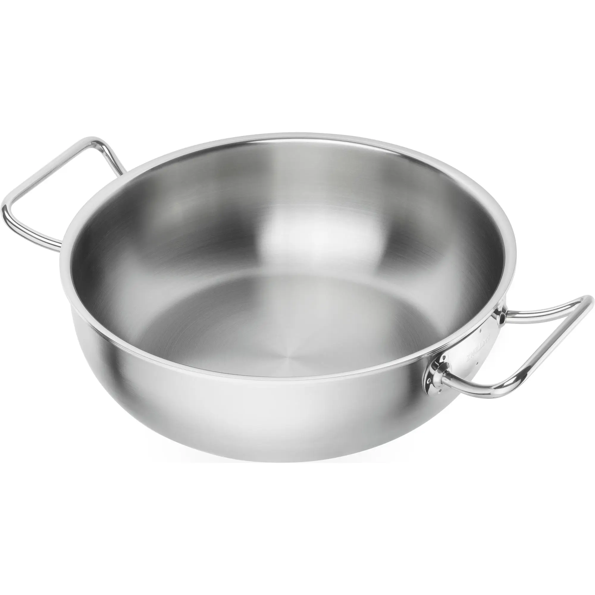Wok stalowy Pro 30 cm powstał z przeznaczeniem do przyrządzania potraw w większej ilości, np. zup. Wykonany został ze stali nierdzewnej. W jego masywnej podstawie Sigma Classic+ znajduje się aluminiowy rdzeń, który ułatwia rozprowadzanie ciepła, dzięki czemu wok szybko i równomiernie rozgrzewa się. Stalowe uchwyty są łatwe w trzymaniu, nawet w rękawicach kuchennych. W tradycyjnej kuchni wok ogrzewany jest na wolnym ogniu, natomiast wok stalowy Pro można stosować na każdym źródle ciepła wraz z kuchenką indukcyjną.
