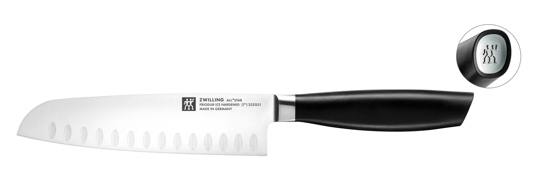 Noże marki Zwilling wyróżniają się wyjątkowo wysoką jakością materiałów wykonania, co przekłada się na ich funkcjonalność w kuchni domowej i profesjonalnej. Kolekcję All Star tworzą wszystkie popularne typy noży o wszechstronnym zastosowaniu. Ich minimalistyczny design z czarnymi uchwytami idealnie odnajdzie się zarówno w nowoczesnej jak i tradycyjnej kuchni. Nasadki na końcach rączek z wytłoczonym logo Zwilling stanowią stylowy akcent kolorystyczny.