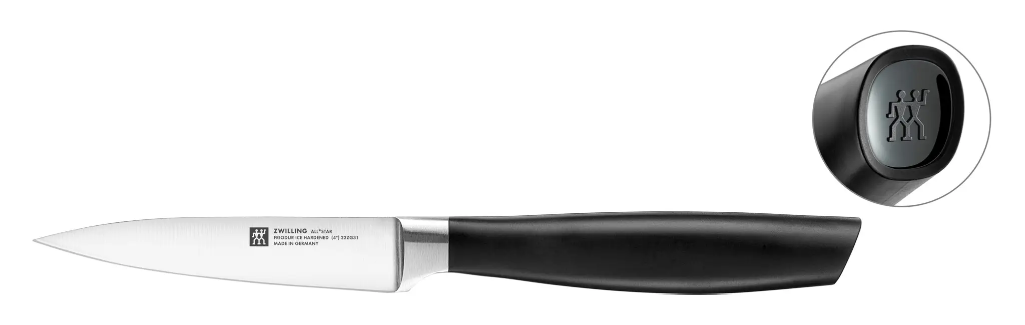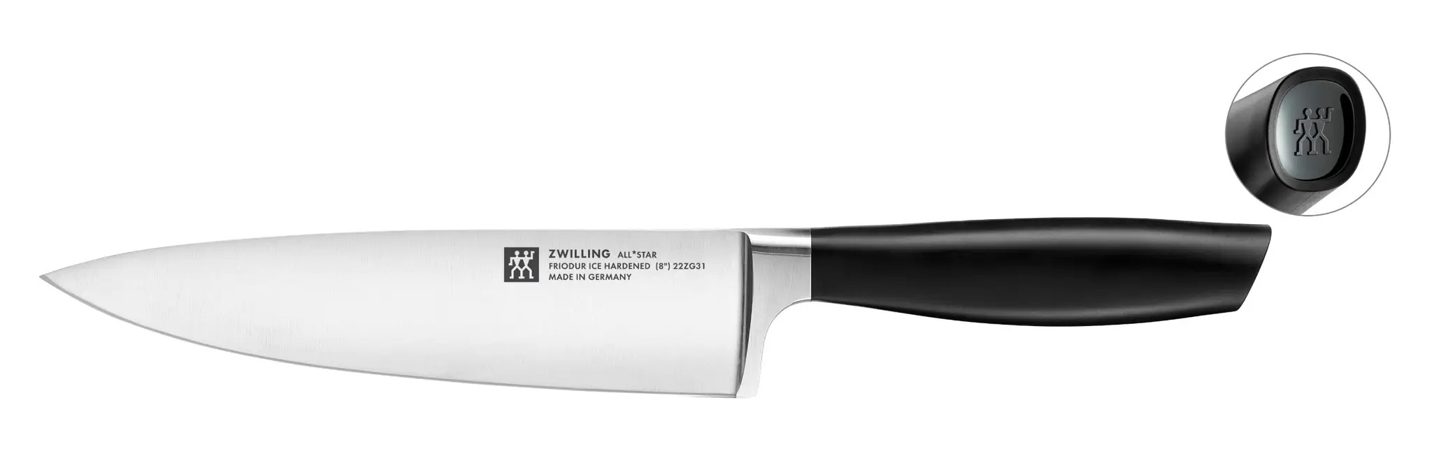 Noże marki Zwilling wyróżniają się wyjątkowo wysoką jakością materiałów wykonania, co przekłada się na ich funkcjonalność w kuchni domowej oraz profesjonalnej. Kolekcję All Star tworzą wszystkie popularne typy noży o wszechstronnym zastosowaniu. Ich minimalistyczny design z czarnymi uchwytami wspaniale odnajdzie się zarówno w nowoczesnej jak i tradycyjnej kuchni. Nasadki na końcach rączek z wytłoczonym logo Zwilling stanowią stylowy akcent kolorystyczny.