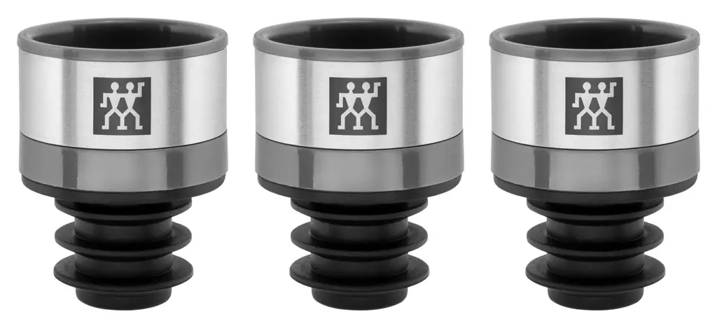 Prezentowany zestaw zawiera 3 korki próżniowe pasujące do wszystkich standardowych szyjek butelek (17-19 mm). Wykonane zostały z najwyższej jakości stali nierdzewnej i tworzywa sztucznego, a ich design jest wyjątkowo elegancki i nowoczesny. Idealnie nadadzą się do przechowywania otwartego wina, spowalniając proces utleniania dzięki innowacyjnej uszczelce, co pozwoli na zachowania jego walorów smakowych i zapachowych na dłużej. Ponadto świetnie sprawdzą się także przy przechowywaniu innych napoi, soków, aromatyzowanych oliw czy olejów. Korki te nie są jedynie przeznaczone do napojów gazowanych. Ich dodatkową zaletą jest możliwość mycia w zmywarce, co ułatwi czyszczenie.