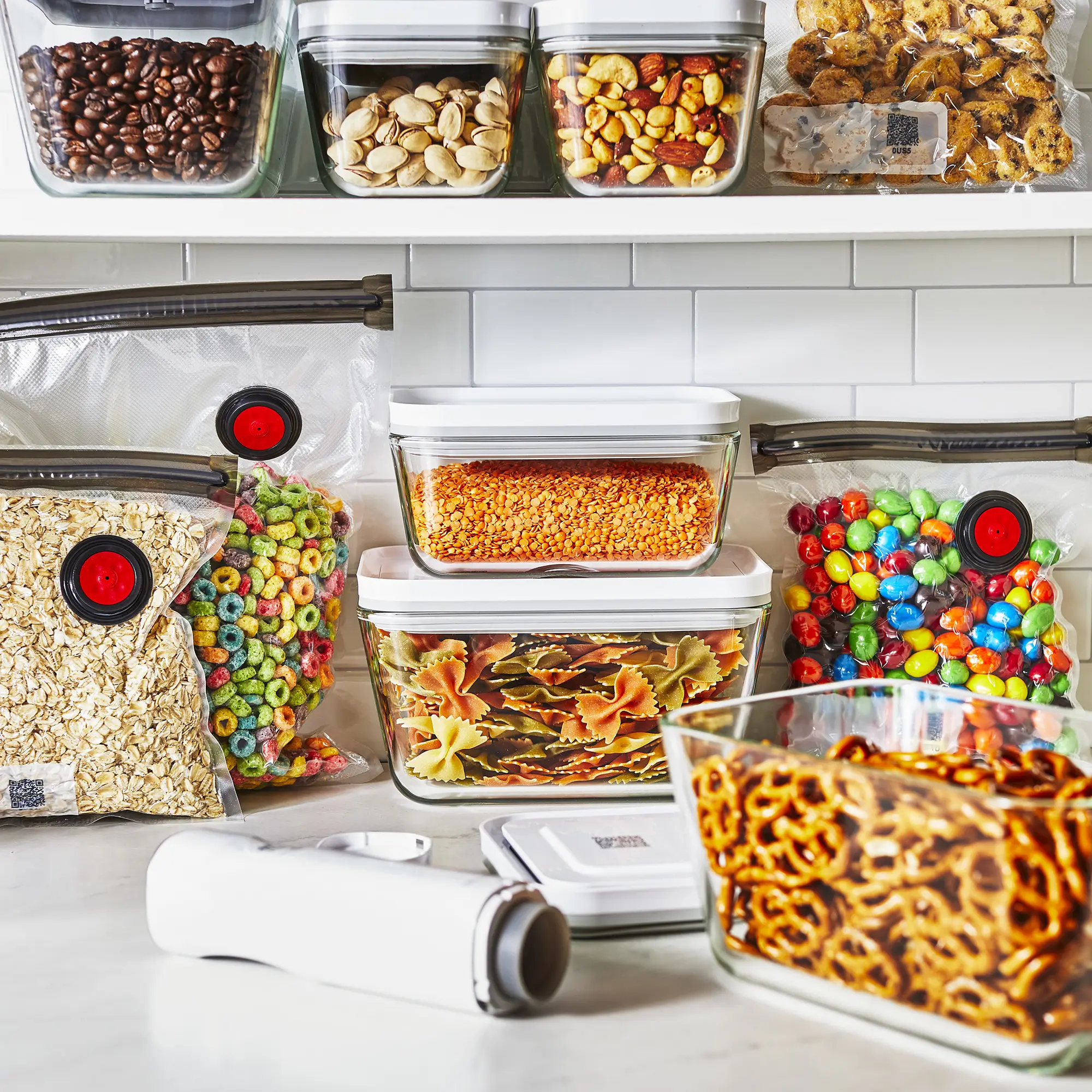 Najwyższej jakości szklane pojemniki próżniowe Fresh&Save w wybitny wręcz sposób łączą wygodę, trwałość oraz niepowtarzalny design. Świeżo przygotowane guacamole nie musi już brzydko ciemnieć i tracić właściwości tak szybko jak dotąd. Zestaw, składa się z trzech różnej wielkości pojemników w rozmiarach S, M i L. Aby wytworzyć wewnątrz próżnię wystarczy nacisnąć przycisk dostępnej osobno bezprzewodowej pompy próżniowej. Usunie ona zbędne powietrze z wnętrza pojemnika, zachowując nawet pięciokrotnie dłużej świeżość, smak i zapach przechowywanych potraw czy składników.