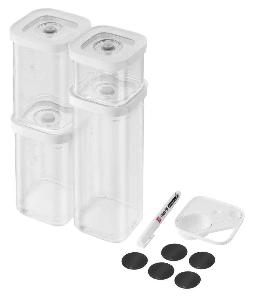 Zwilling w swojej linii Fresh & Save oferuje przeróżne produkty ułatwiające przechowywanie żywności. Kolekcję Fresh & Save Cube tworzą m.in. pojemniki zaprojektowane w taki sposób by można było łatwo i wygodnie uporządkować spiżarnię, wydłużyć trwałość żywności i zmaksymalizować przestrzeń w kuchni oraz osłony na nie. Jak w przypadku innych produktów tej marki, również i te wykonane zostały z wysokiej jakości materiałów.