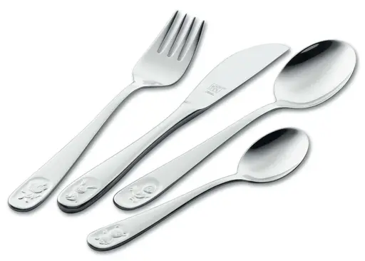 Ten przepiękny zestaw stworzony został z myślą o uprzyjemnieniu i ułatwieniu dzieciom spożywania posiłków. Niewielkie rozmiary sztućców znakomicie pasują do małych dłoni dziecka. Ostre krawędzie są specjalnie stępione by zminimalizować ryzyko skaleczenia.