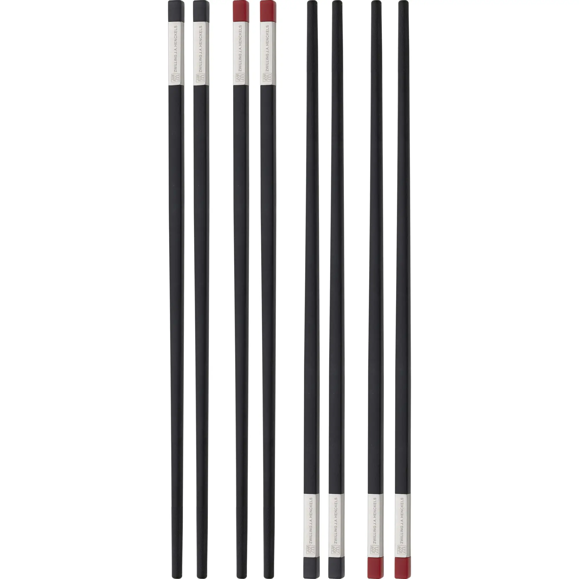 Pałeczki przeznaczone są do wszelkich azjatyckich potraw. Zestaw składa się z czterech par czarnych i czerwonych pałeczek wykonanych z wysokiej jakości tworzywa sztucznego. Zapakowany jest w eleganckie opakowanie, dzięki czemu zestaw ten świetnie prezentuje się w każdej kuchni lub jadalni. Nadaje się też na prezent dla najbliższych.