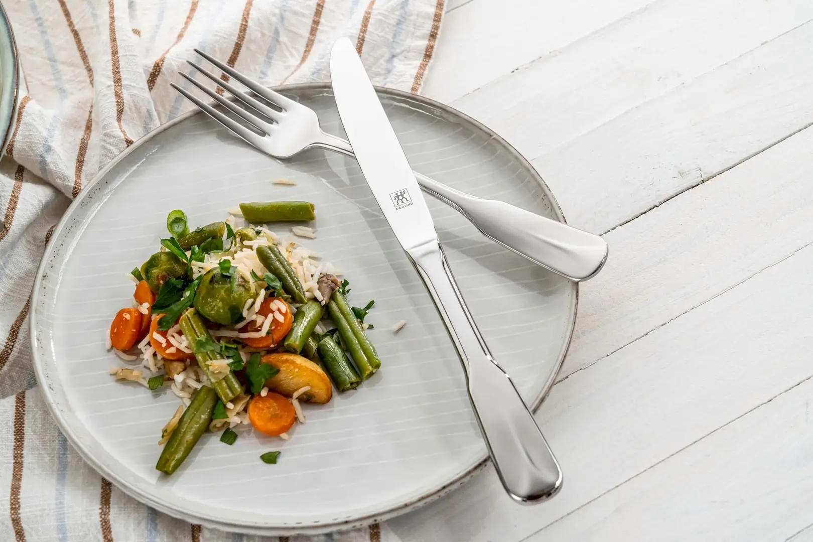 Marzysz o elegancko i klasycznie nakrytym stole? W takim razie 60-częściowy zestaw sztućców ZWILLING Maryland jest stworzony właśnie dla Ciebie. W komplecie znajdziesz po 12 sztuk każdego rodzaju: widelców, noży, łyżek stołowych, łyżeczek do kawy oraz widelczyków do deserów – idealnych na każdą okazję.